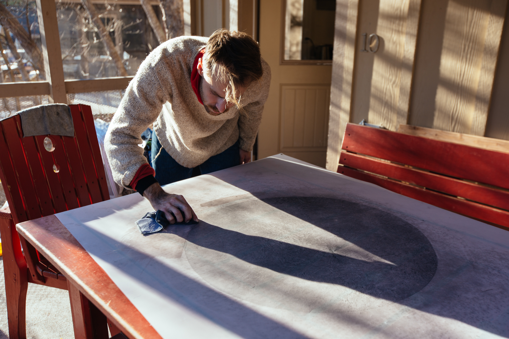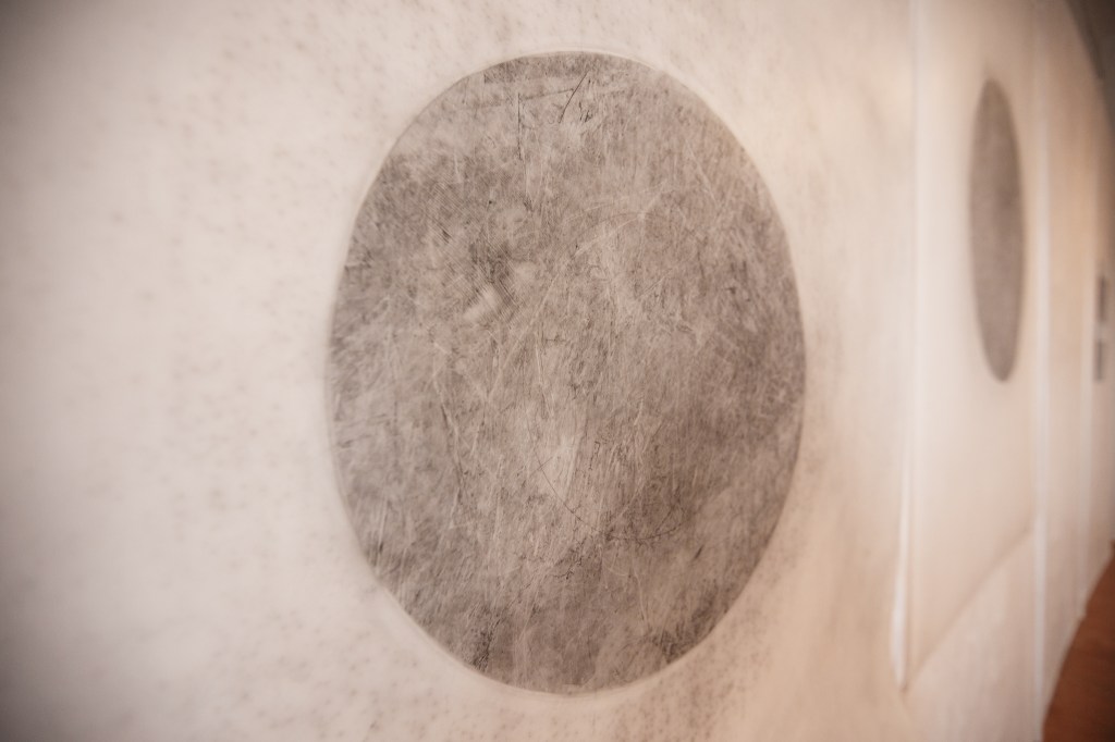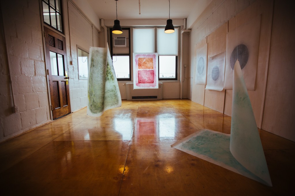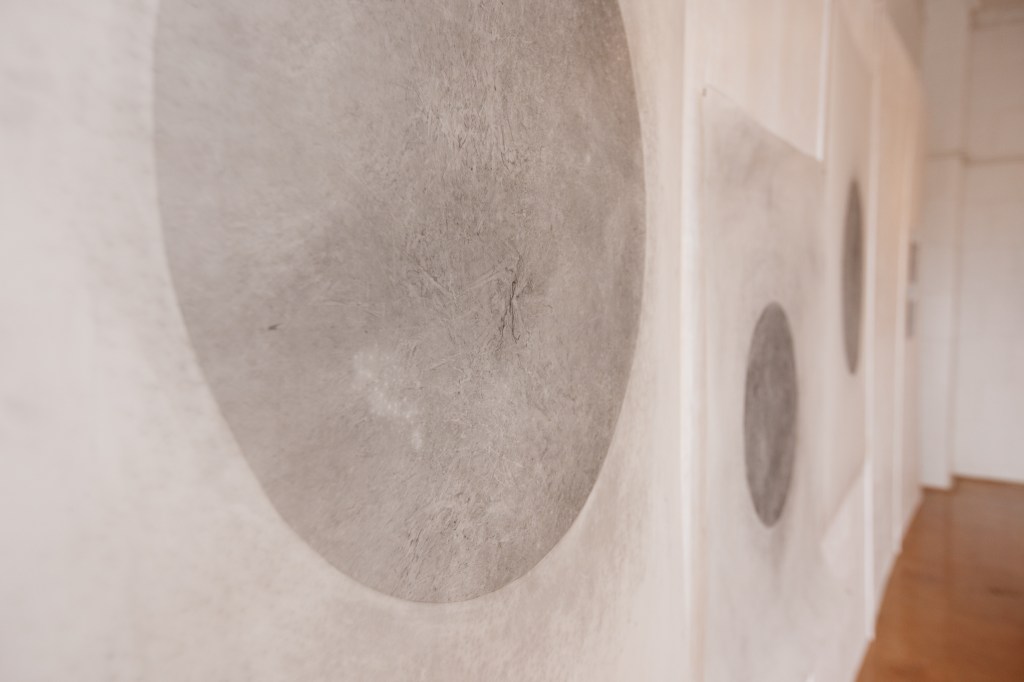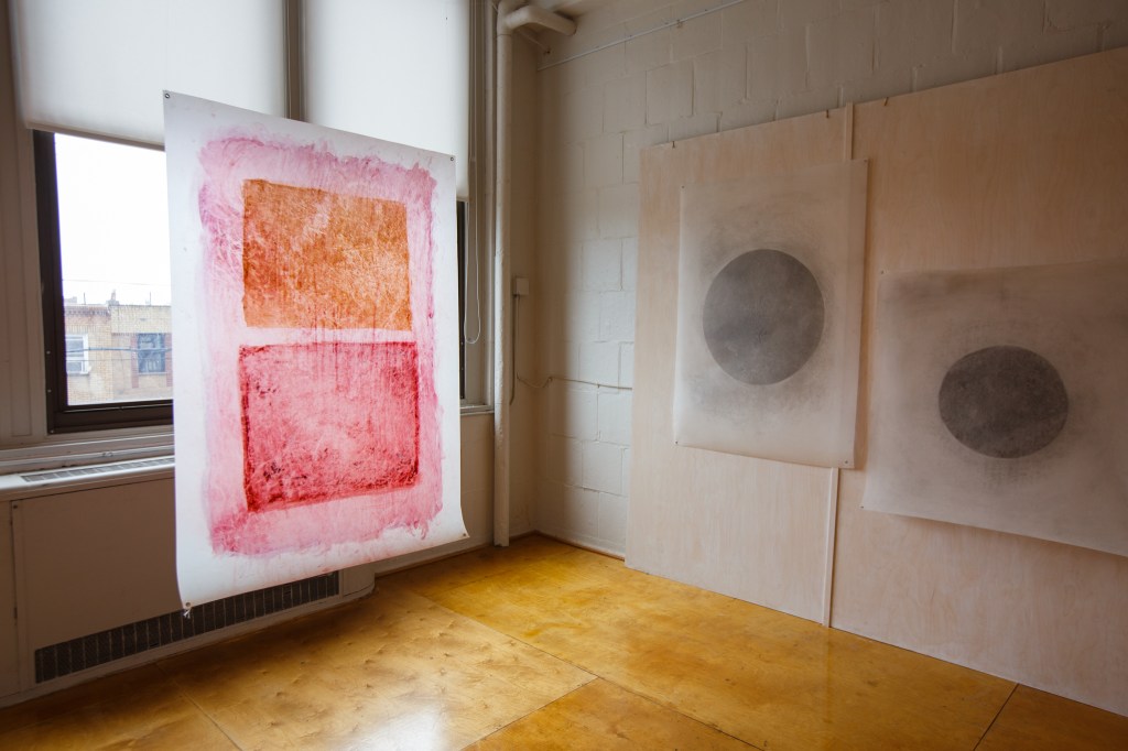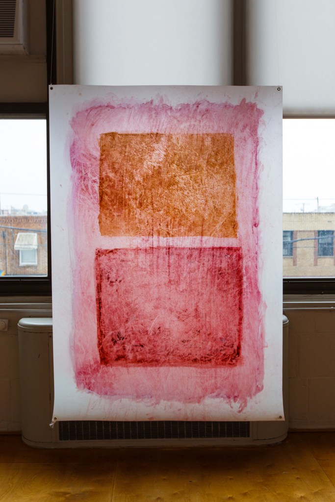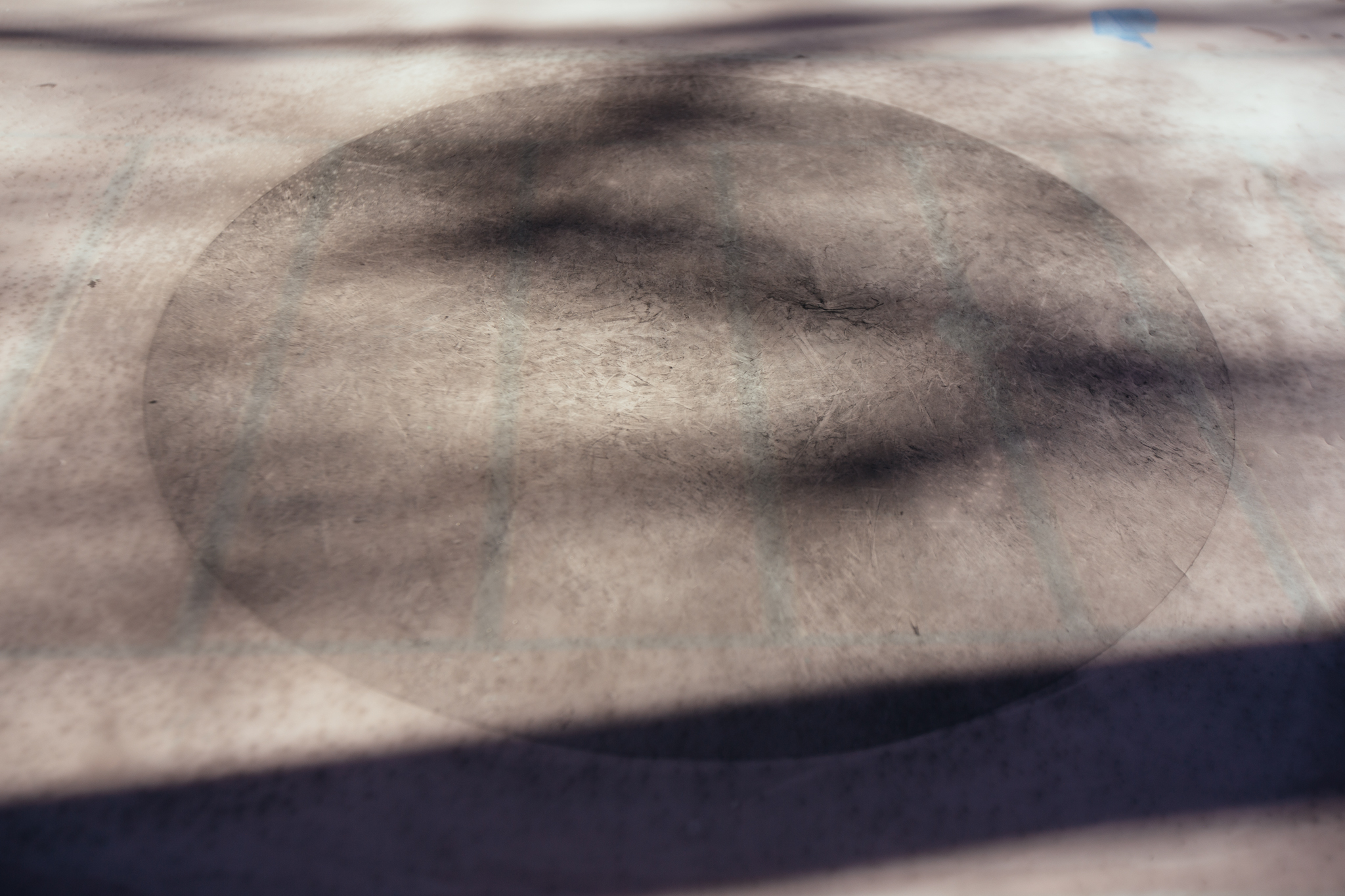 “In January 2023, Monroe Isenberg set out to make collaborative drawings with American Beach Grass at Cape Henlopen. He set up a makeshift art studio in one of the nearby camping cabins. There he applied charcoal and pastels to sheets of semi-translucent film, which he staked above patches of grass. At that point, the creative work was up to the wind, sand, and grasses. The artworks on view represent the “brushstrokes” of beach grass against Isenberg’s prepared film sheets. Depending upon wind conditions, these range from subtle to dramatic.