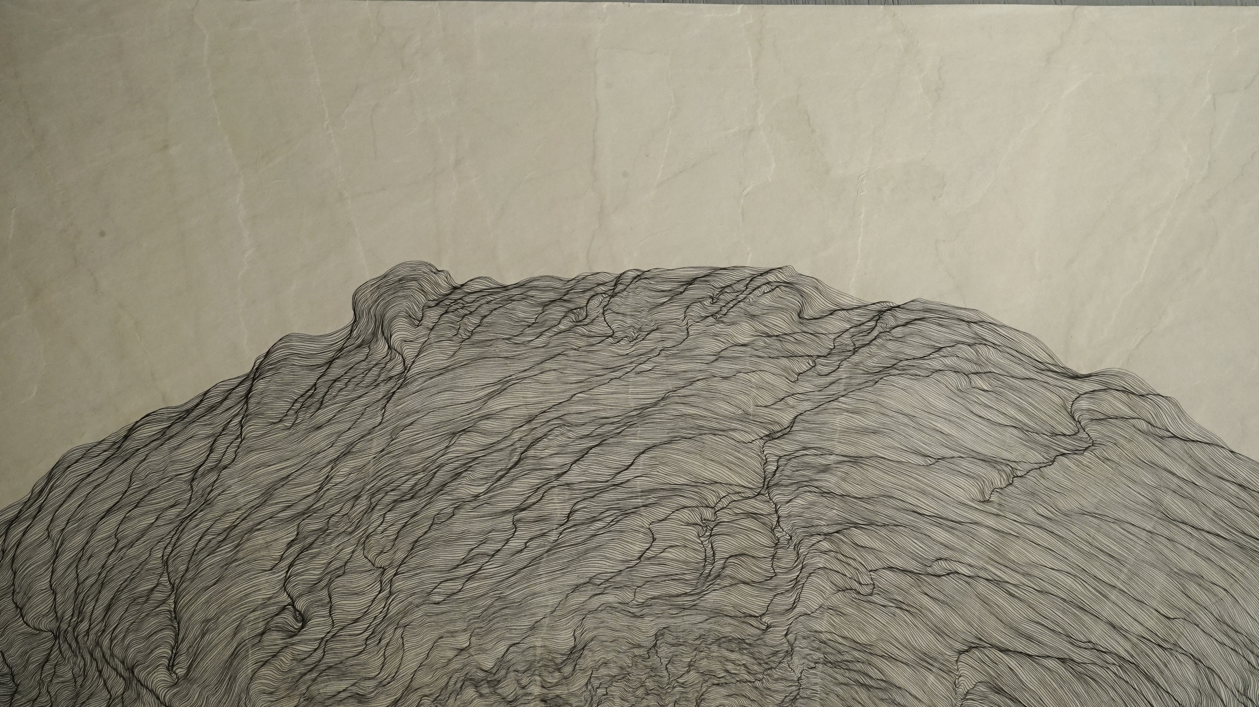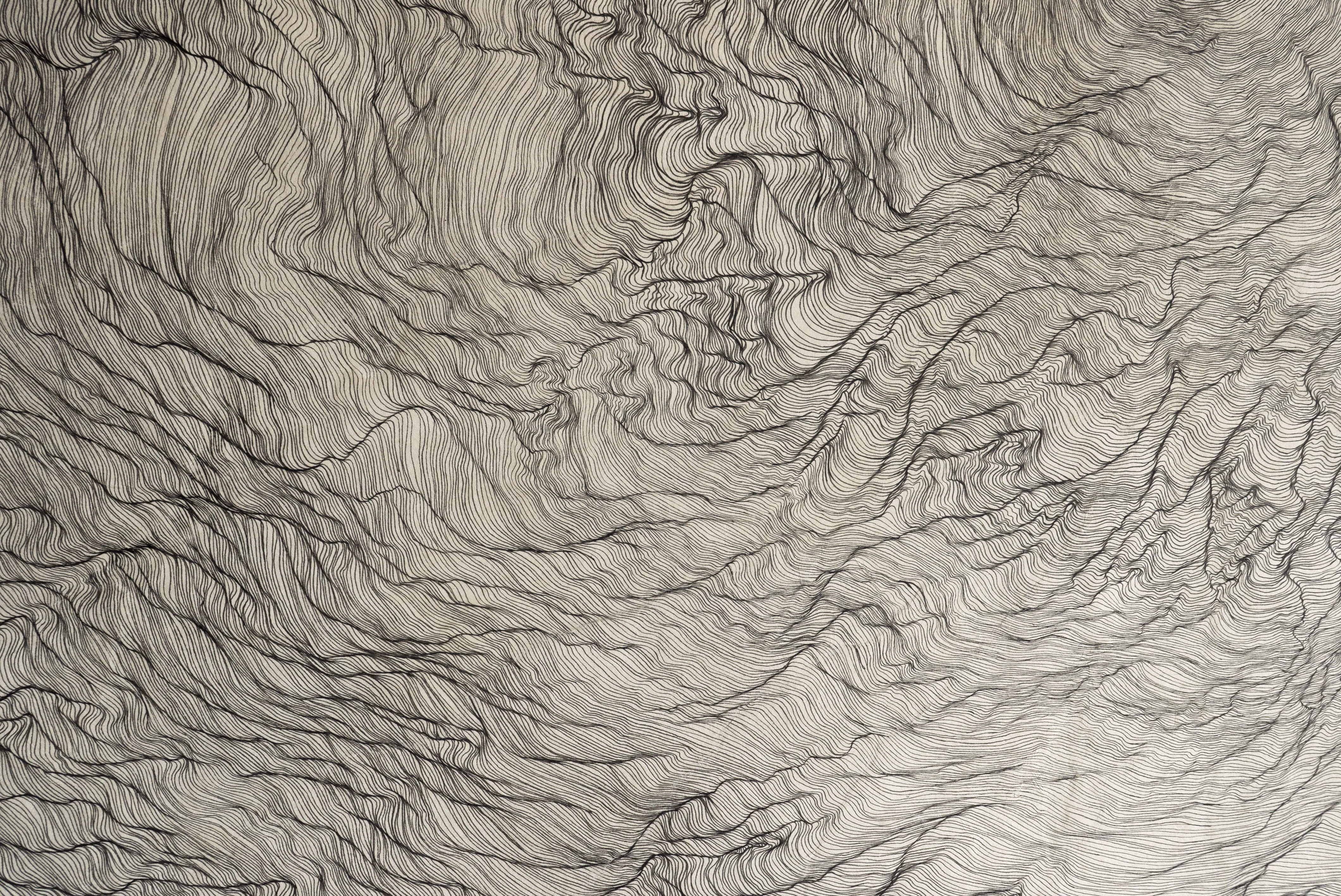 Through cyclic repetition, the drawing emerges. An accidental shake compounds over time into waves that undulate throughout the paper. By embracing mistakes, the mark grows in unpredictable ways. I relinquish control and become a vessel through which the drawing flows.