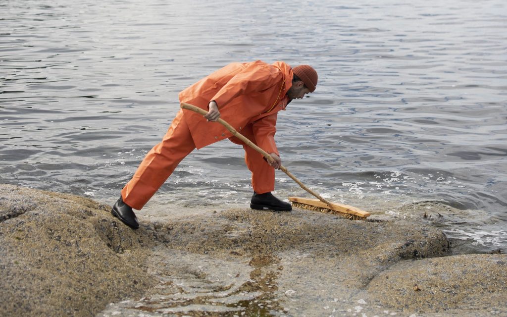 The two-channel video and performance, Earthworb explores these questions. Played to the ghostly lullaby of “I Dont Want to Set the World on Fire” by the Ink Spots, the work references a child in a womb and weaves this intimate relationship into the surrounding fjord. The work explores the ground’s ability to heal, protect, and sustain, while exposing our fragile and vulnerable interdependence with Earth.
