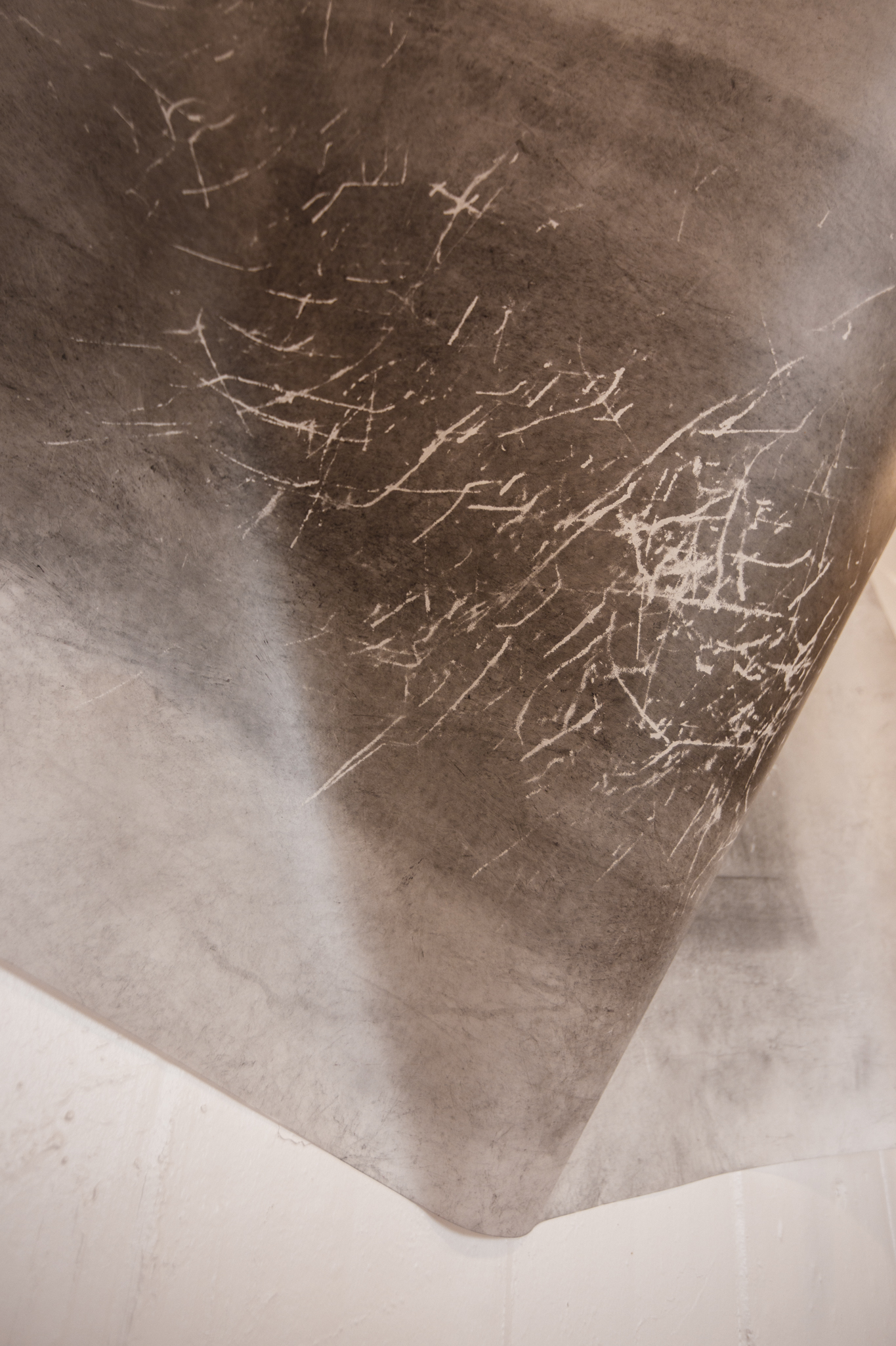 Cast washi paper on concave surface and archival ink