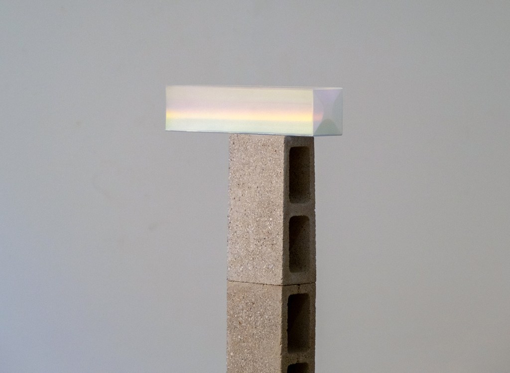 cinderblock, plexiglass, refracted light