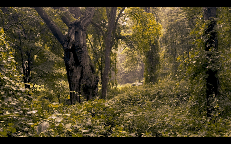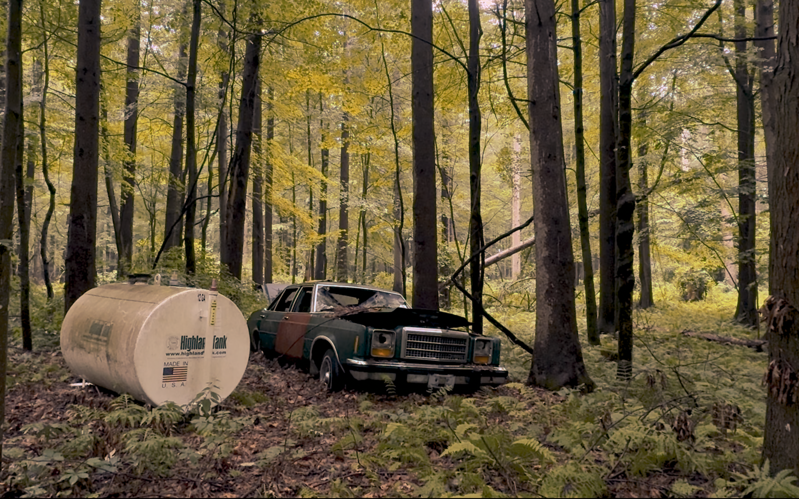 The film merges Stanford’s uncanny narration and vocal resonant frequencies with imagery of overlooked forested spaces and serves as a meditation on memory, loss, and the strange persistence of what’s been discarded and forgotten. Sounds and objects emerge. Holes open. Stories linger but don’t resolve. In this strange world, there is no center—only the gravitational pull of what’s missing.